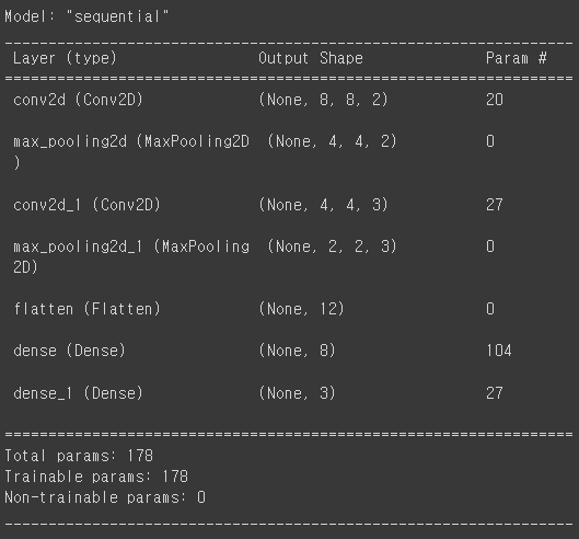 model.add(Conv2D(2, (3, 3), padding='same', activation='relu', input_shape=(8, 8, 1)))