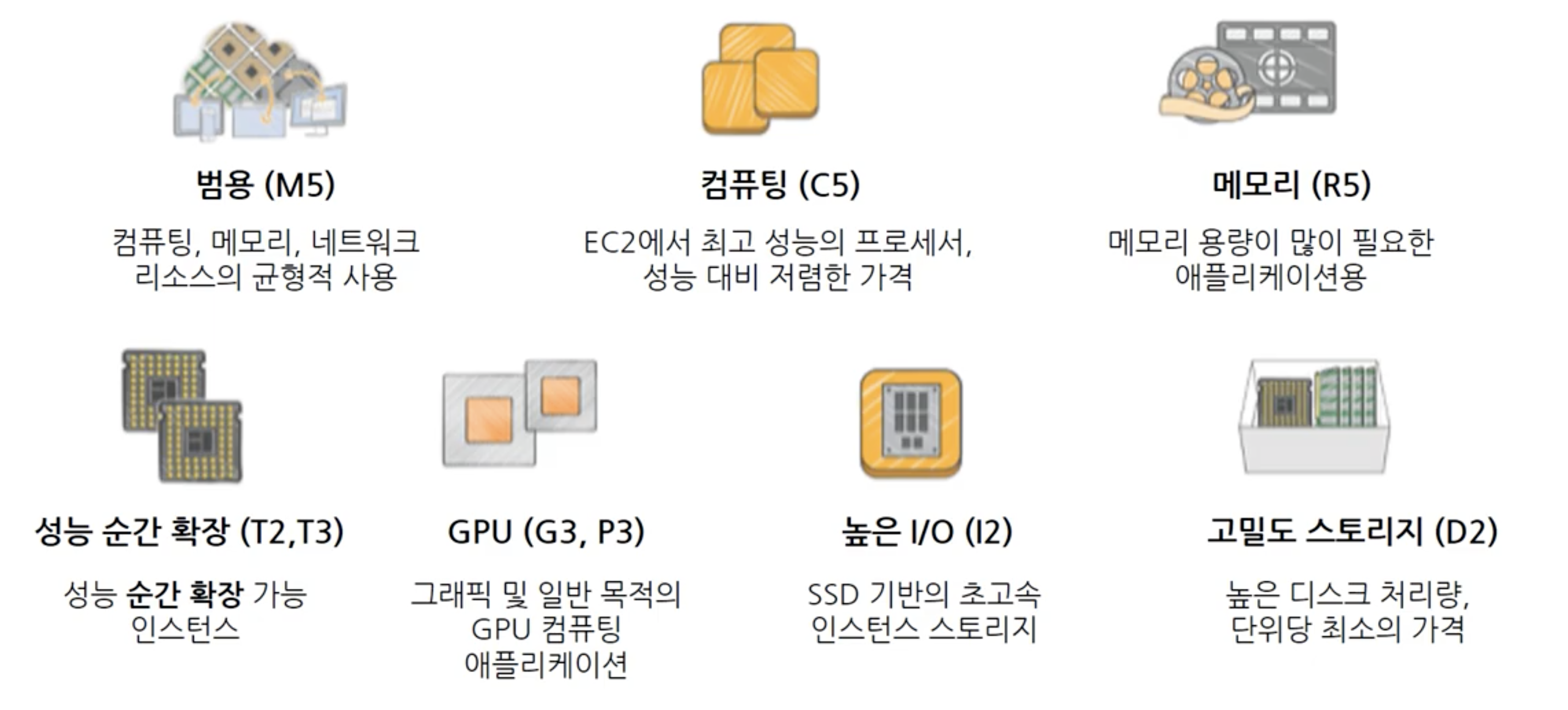 - '고객 업무' 영역에 따른 '다양한 인스턴스 타입(= 인스턴스 패밀리)' 제공