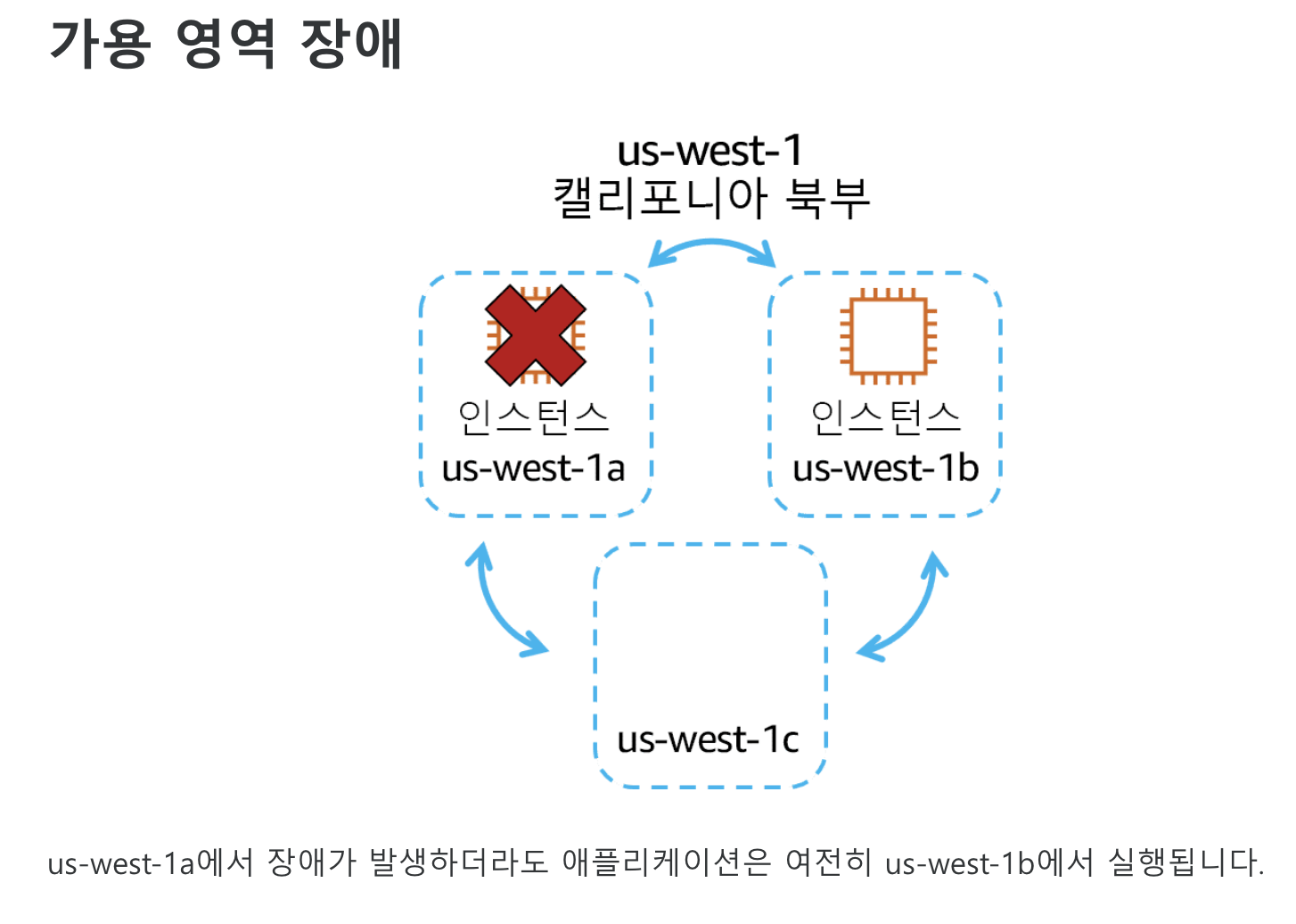 = us-west-1a에서 장애가 발생하더라도 애플리케이션은 여전히 us-west-1b에서 실행됩니다.