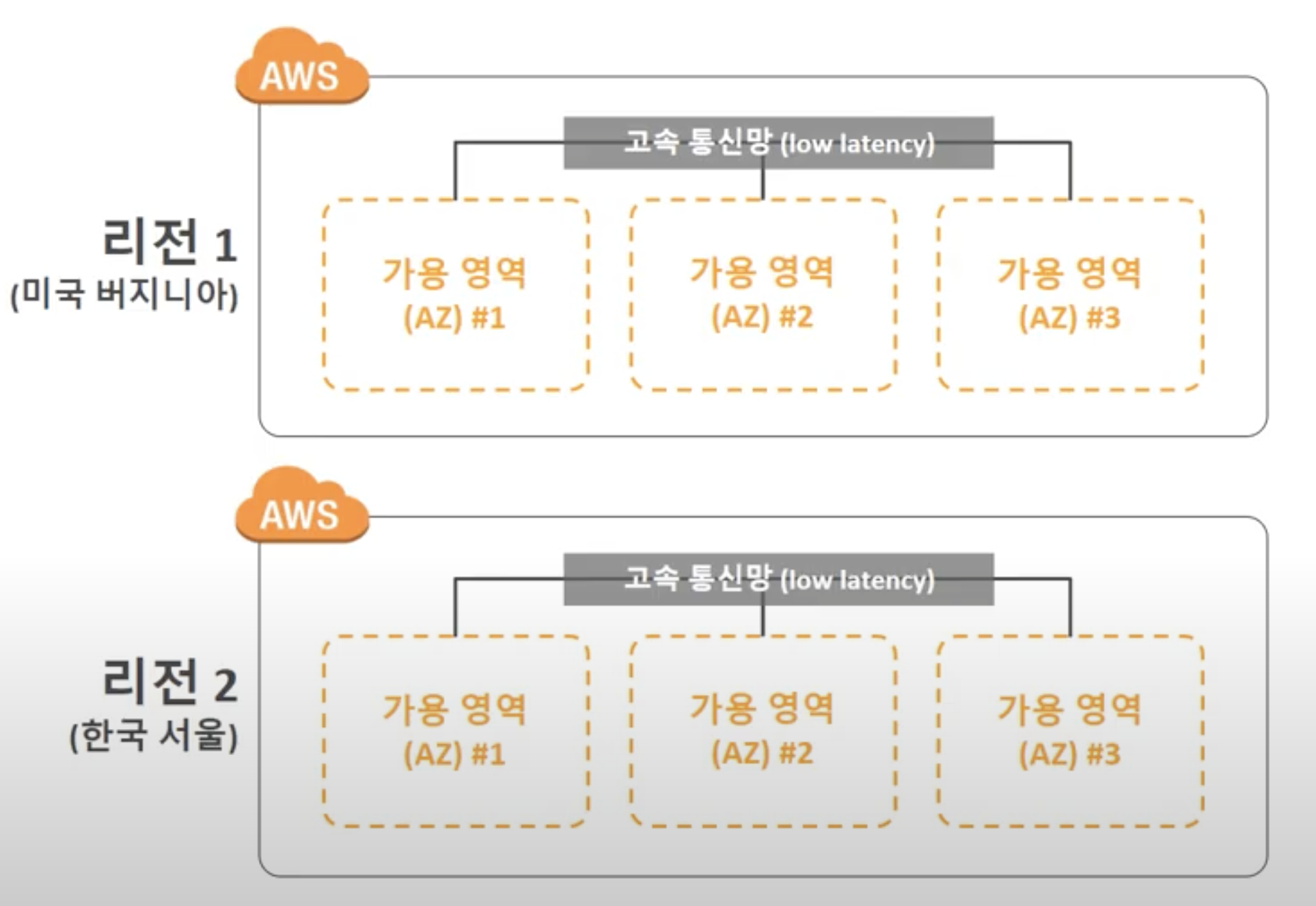 - AWS 서비스가 운영되는 지역( 복수 개의 데이터 센터들의 집합 )