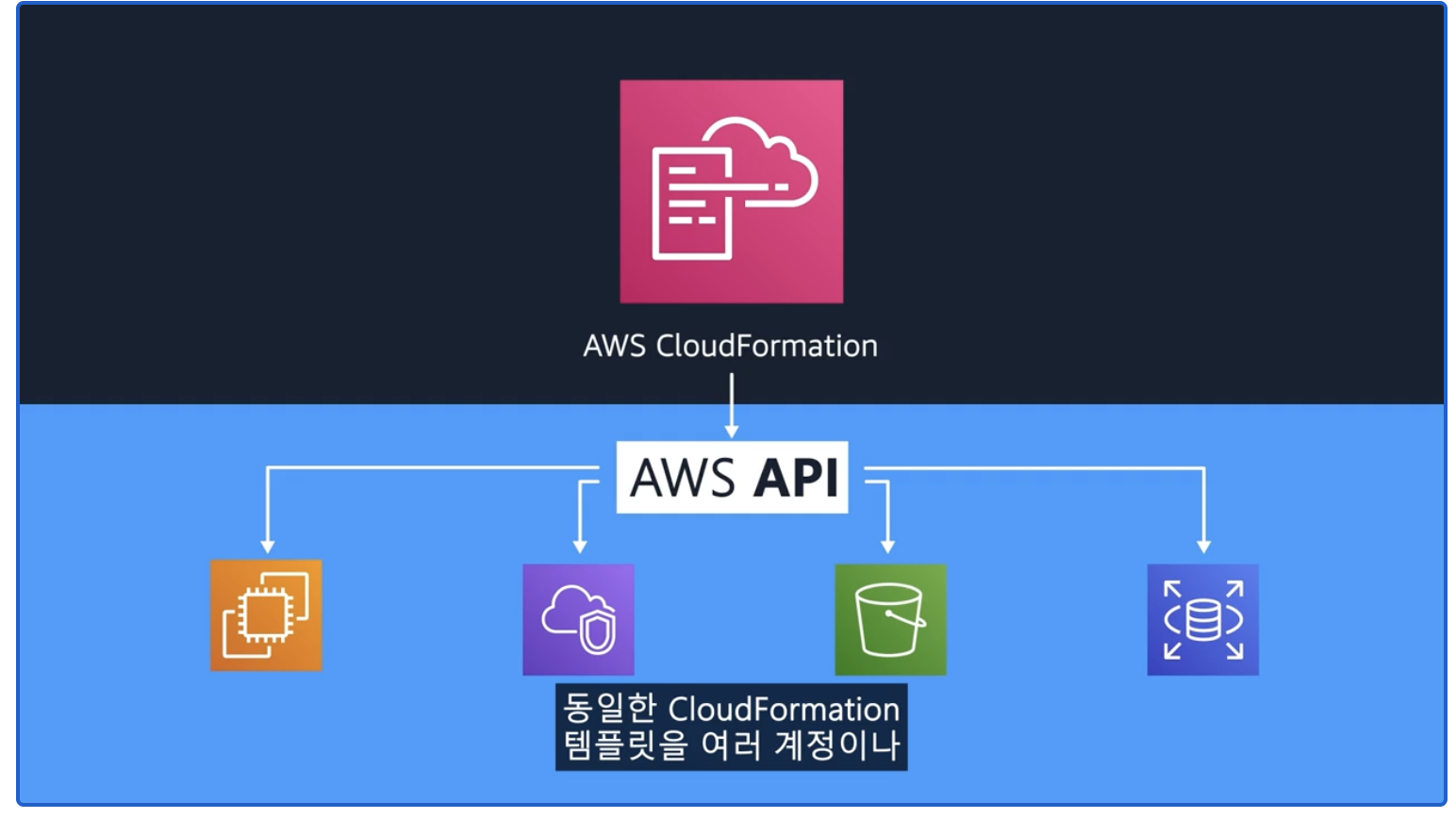 CloudFormation은 백엔드 AWS로 가는 모든 호출과 API를 사용자 대신 관리합니다. 동일한 CloudFormation 템플릿을 여러 계정이나 리전에서 실행할 수 있으며 여러 계정 또는 리전에서 동일한 환경이 생성됩니다. 완전히 자동화된 프로세스이므로 인적 오류가 발생할 여지가 적죠.