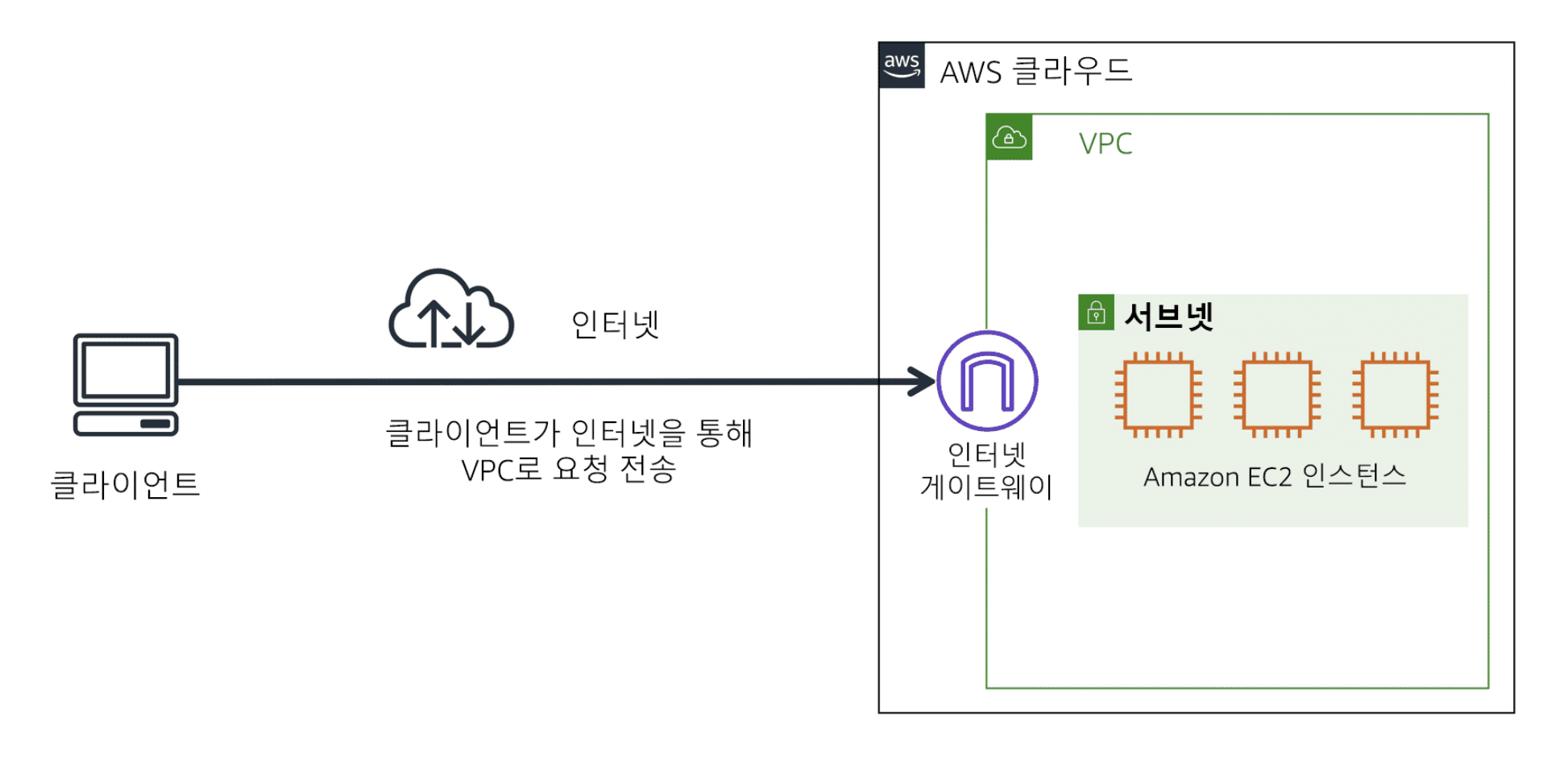 - 고객이 커피숍에 들어가기 위해 사용하는 출입문과 비슷한 것으로 생각할 수 있습니다. 인터넷 게이트웨이가 없으면 아무도 VPC 내의 리소스에 액세스할 수 없습니다.