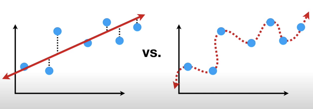 | 과적합 overfitting = 복잡한 모델 | 과소적합 underfitting = 간단한 모델 |