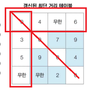 1. 자기 자신에서 자기 자신으로 가는 비용은 0(= 대각선)