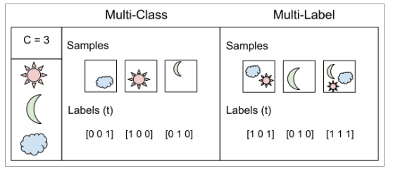 Multi-class 분류 문제는 하나의 그림에 하나의 객체만 있어야 하고, 그리고 그 객체는 2개 이상의 카테고리에 속하는 경우