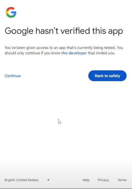 - OAuth Consent Screen 설정 시 등록했던 테스트 사용자 이메일로 로그인했는지 확인합니다.