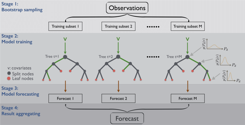 앙상블에 사용하는 작은 모델들은 bootstraping이라는 샘플링 과정으로 얻은 bootstrap set를 사용해 학습