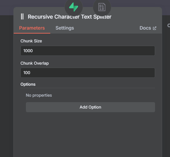 → 이유: 단순히 Text를 읽어오는 것이 아니라 File을 가져오기 때문 - Text Splitter는 Recursive Character Text Splitter 선택