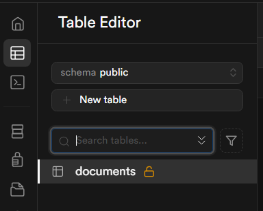 - Default SQL 템플릿 사용시 Table Editor에 documents 생성확인