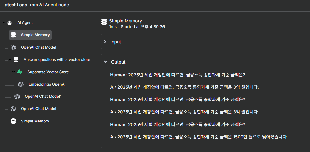 - Window Buffer Memory 또는 Postgres Chat Memory 연결