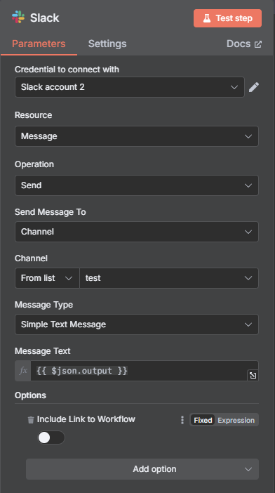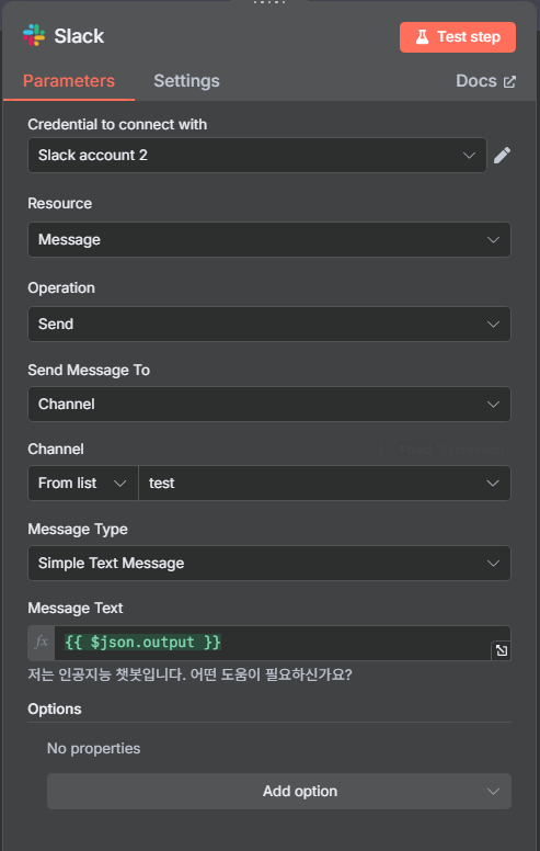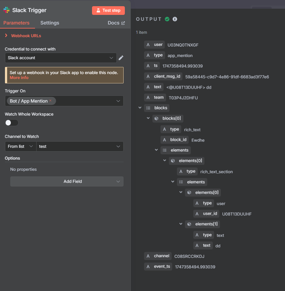 - n8n에서 Slack 관련 노드를 사용해 테스트