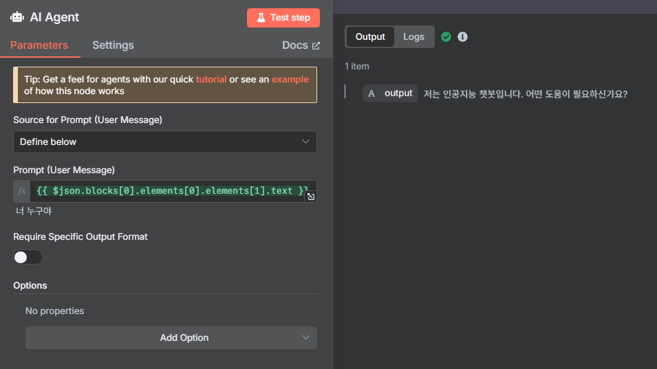 - n8n에서 해당 워크플로우를 Test 실행하거나,