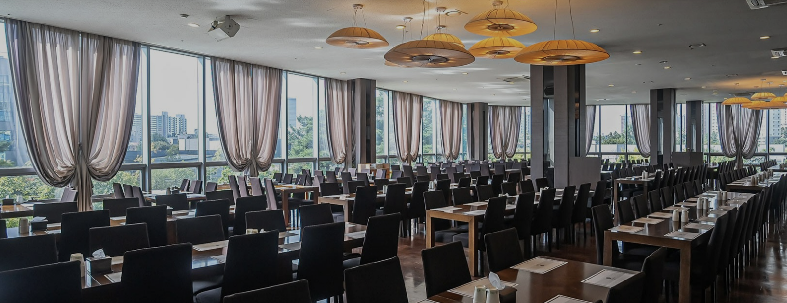 연회장 딱 들어가자마자 넓다! 라는 느낌이 있었고, 천장도 높아서 전반적으로 시원시원했어요.