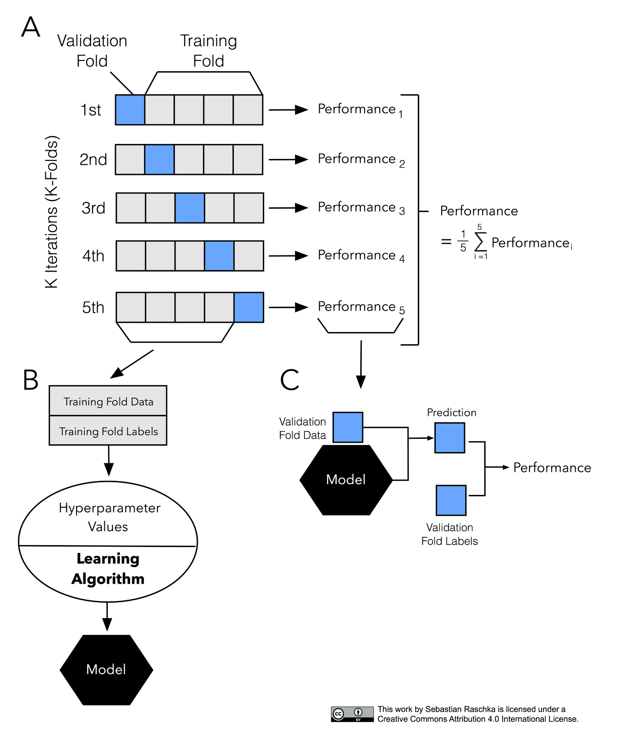 - 총 k 개의 성능 결과가 나오며, 이 k개의 평균을 해당 학습 모델의 성능이라고 한다.