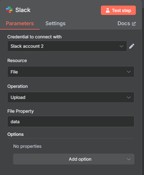 → HTML 파일로 Slack에서 인식되도록 처리 - Slack Upload File 노드로 전달