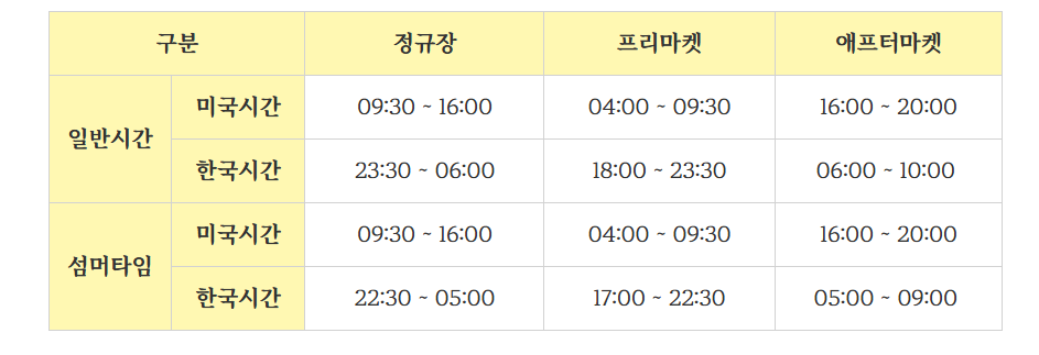 | 구분 | 미국 동부 시간대 | 시차 | 현지 시간 (뉴욕) |