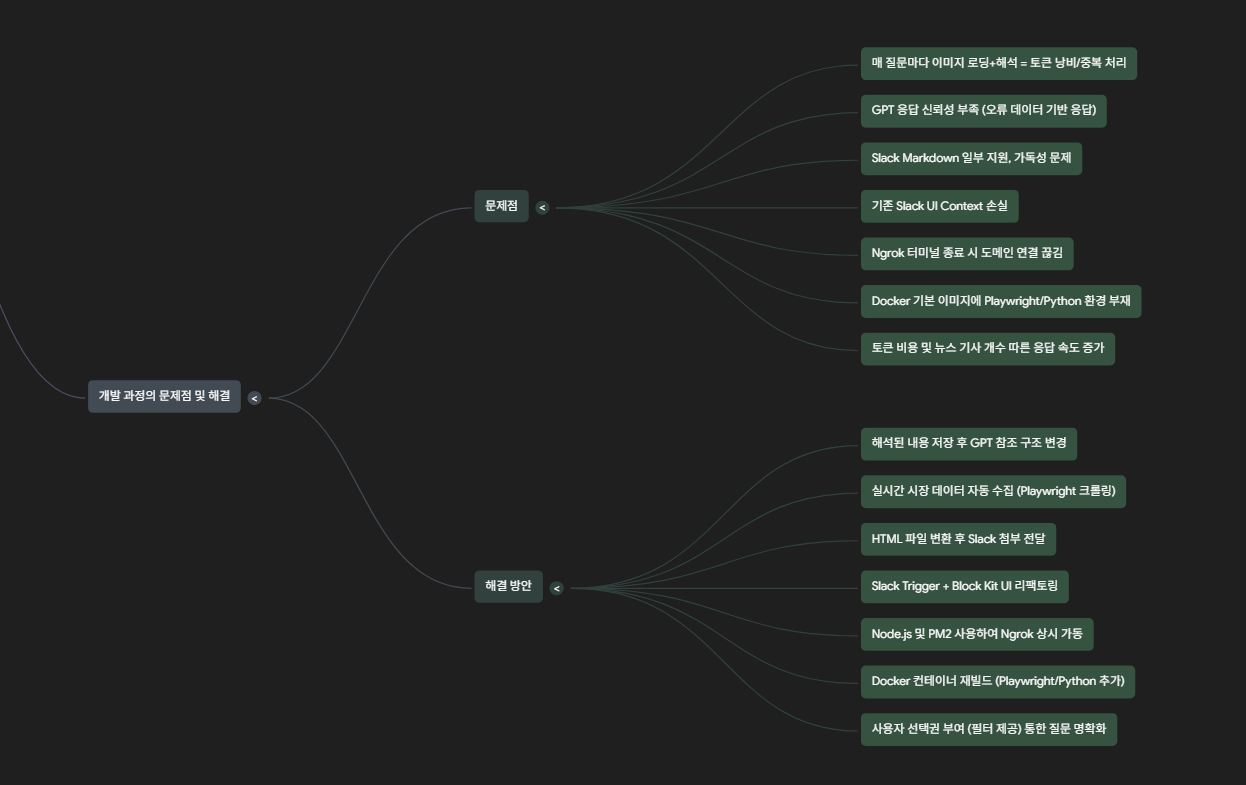 - GPT 토큰 낭비 및 중복 처리(= S&P500 Image): 매 질문마다 이미지 로딩 및 해석을 반복하는 비효율성을 줄이기 위해 "해석된 내용을 저장하고 GPT가 해당 내용을 참조하도록 구조를 변경"했습니다.