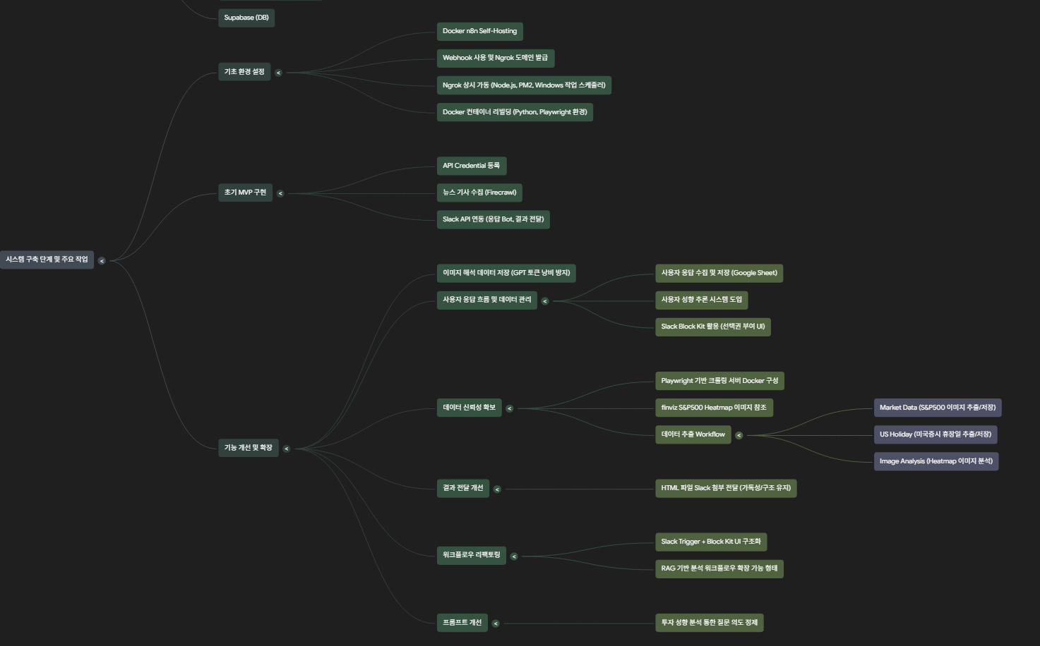 - GPT가 S&P500 Heatmap 이미지를 참조하여 해석할 수 있도록 워크플로우를 구축했습니다. 초기에는 매 질문마다 이미지를 로딩하고 해석하여 토큰 낭비 및 중복 처리 문제가 발생했으나, "해석된 내용을 저장하고 GPT가 해당 내용을 참조하도록 구조를 변경"하여 효율성을 높였습니다.