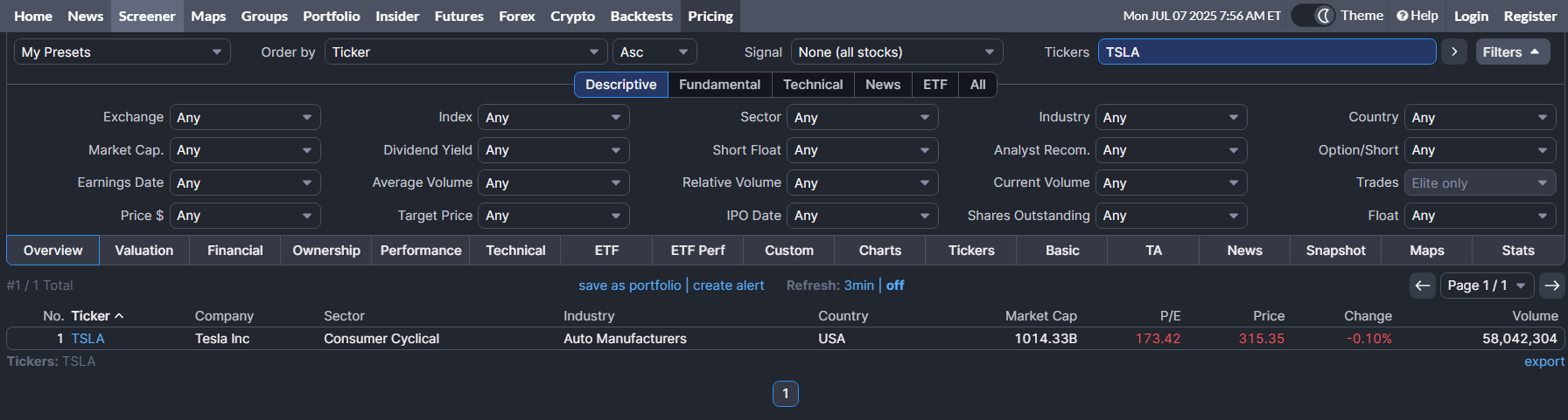 https://finviz.com/screener.ashx?v=111&t=TSLA