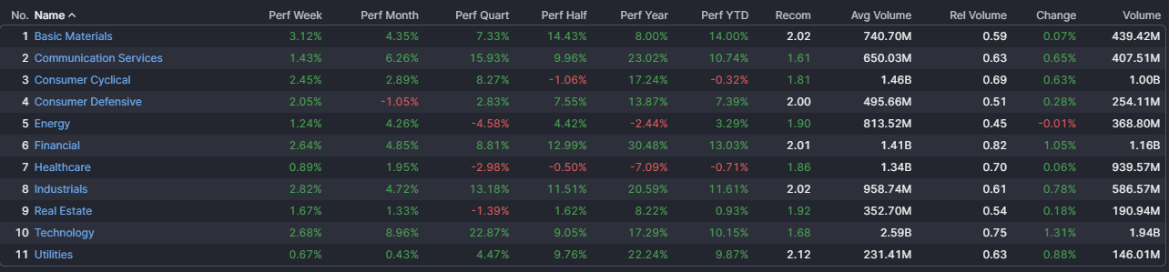 → 섹터별 퍼포먼스, 티커 분포 확인 가능