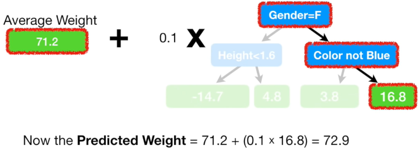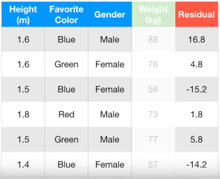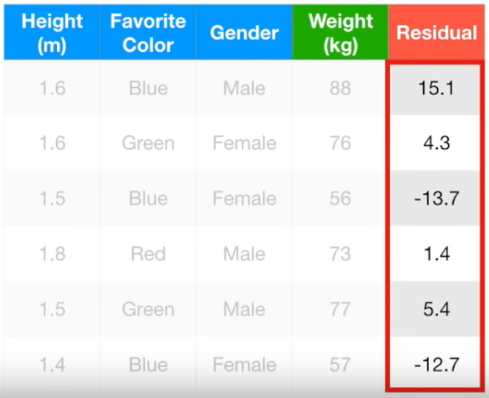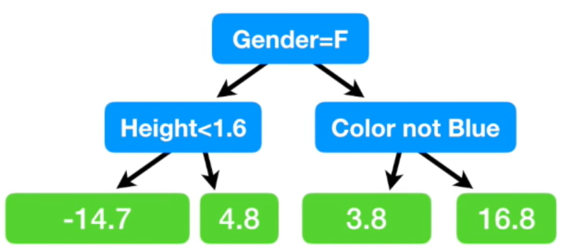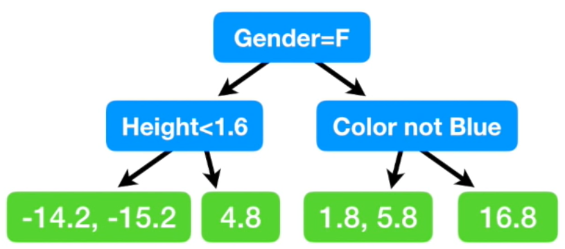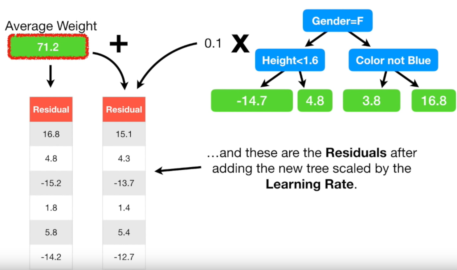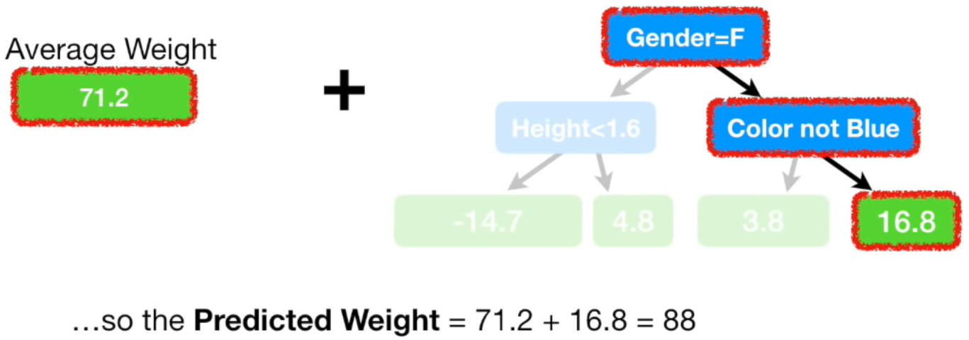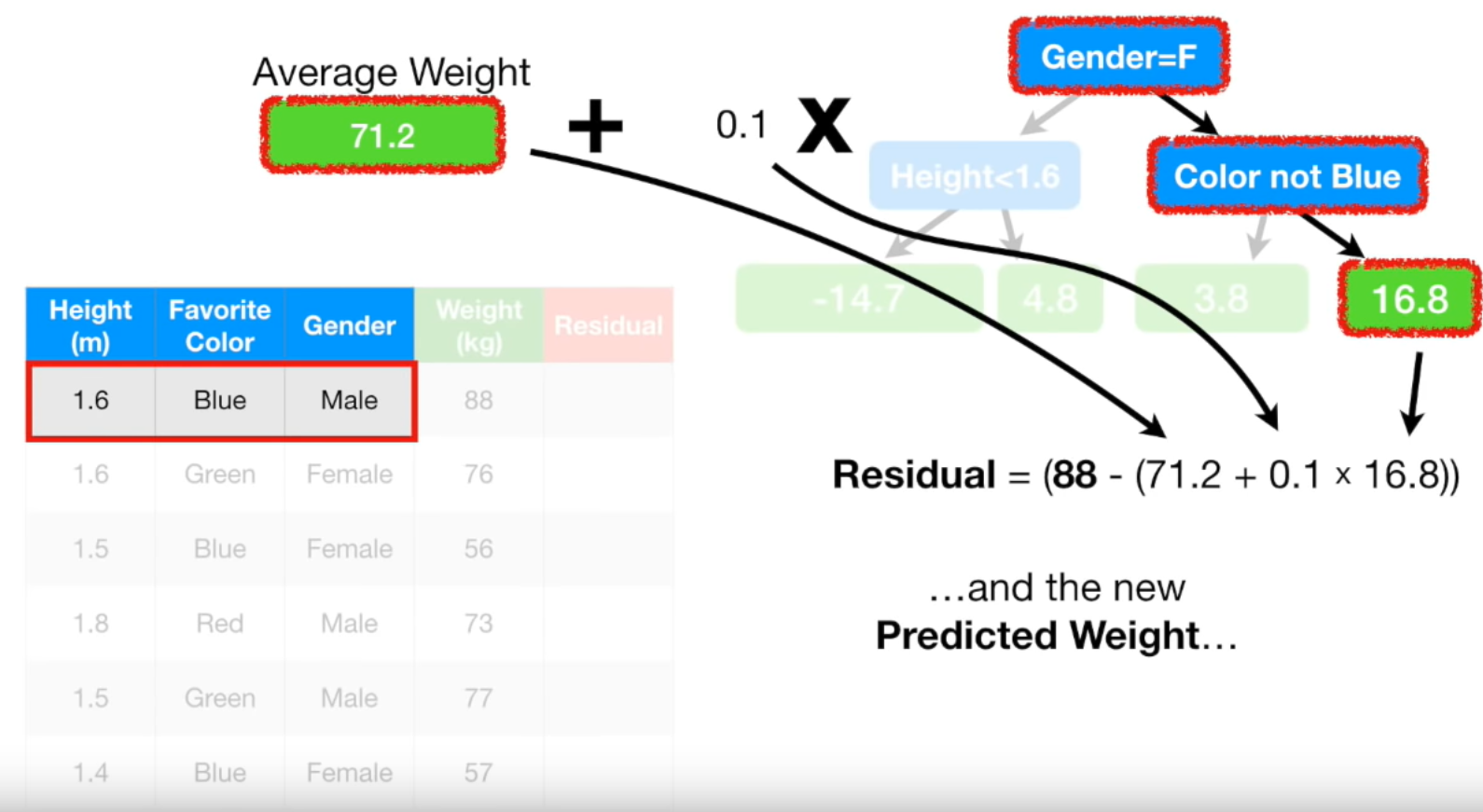 여기서 마지막 leaf 노드에 두개의 residual 값이 있는 경우가 있습니다. 그럴 땐 두 값의 평균으로 치환