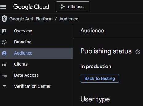 처음에는 내 워크플로우 로직 문제인가 싶었지만, n8n과 연동된 Google Cloud Platform의 OAuth 앱이 '테스트' 상태일 경우, 보안상의 이유로 Refresh Token이 7일 동안 사용되지 않으면 자동으로 만료되는 정책 때문이었다. 주말 동안 워크플로우가 멈춰 있으니, 이 7일 유효 기간에 걸리기 쉬웠던 것이다.