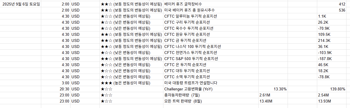 중간중간 사이트에서 경제 발표가 따로 업데이트가 되는것같다. 현재 월요일의 주간 경제 발표 데이터를 긁어오는데, 주간 도중에 추가로 경제 발표가 있을시 업데이트가 되는 듯하다. 이런 경우 날짜를 해당 날짜의 경제 발표 첫 행을 제외하고는 기록하지 않고 있는데, 이전에 발표된 내용이 계속 새로운 데이터처럼 쌓이는 문제가 있었다.(아래 4가지 발표는 토요일에 발표한 내용이 아니다.) 적재 데이터수치로 발표되는 경우엔 실제라는 Column에 업데이트가 되고 있는데, '연설'은 저장되는 특정 수치(실제 Column)가 없어서 이걸 어떻게 구분해서 한 번만 처리하게 할지가 관건이다.