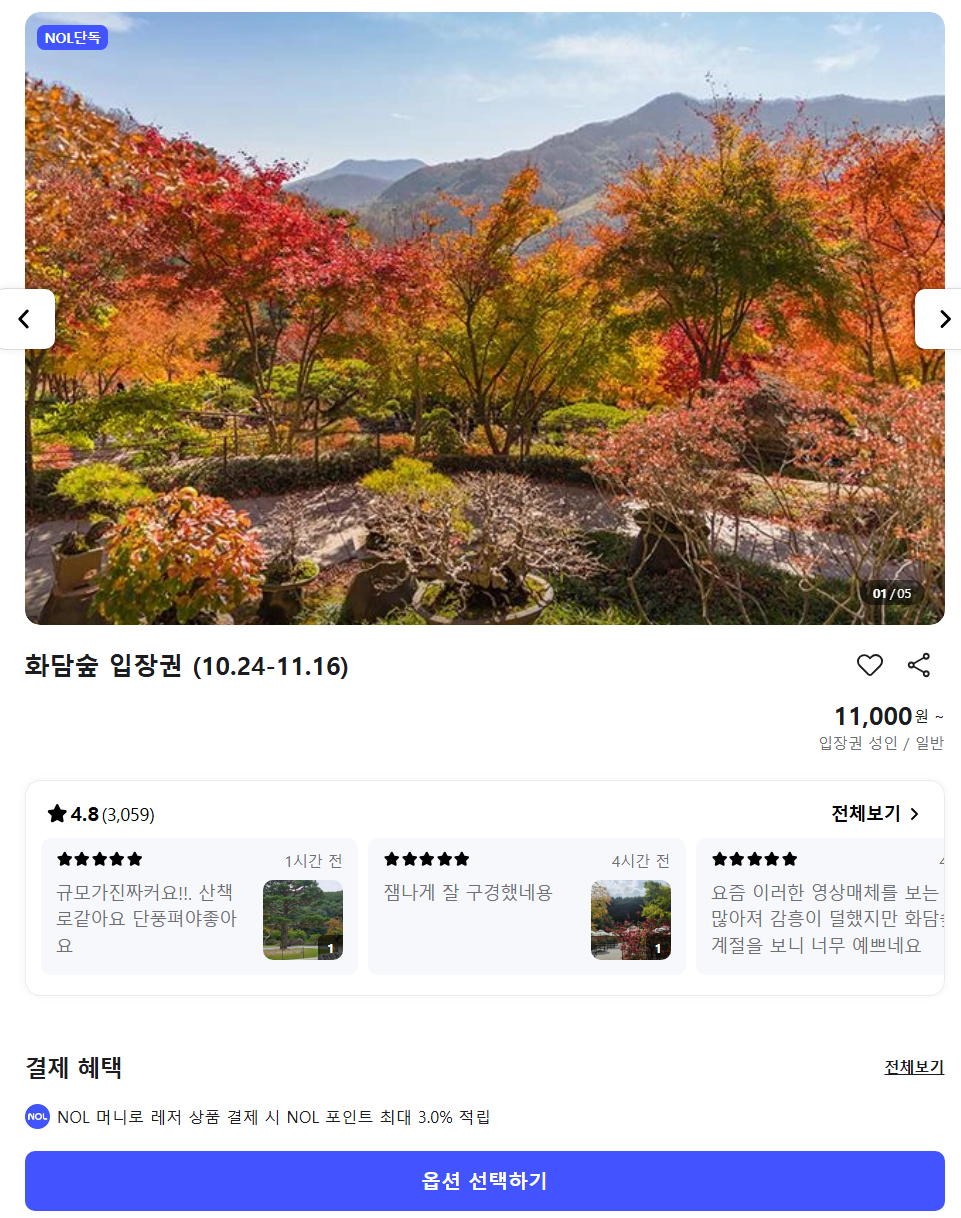 화담숲 티켓 예매 사이트(놀유니버스)로 이동한다.