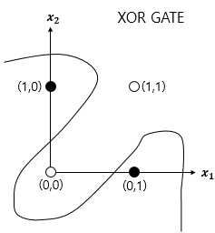 XOR 게이트는 직선이 아닌 곡선.