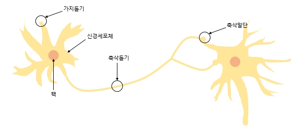 뉴런들 사이에는 시냅스라는 연결이 뉴런마다 1000개에서 10000개까지 연결이 되어서 인터넷처럼 망으로