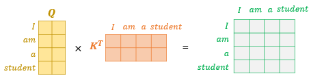 - 먼저 쿼리 행렬(Q)과 키 행렬(K)을 내적합니다.