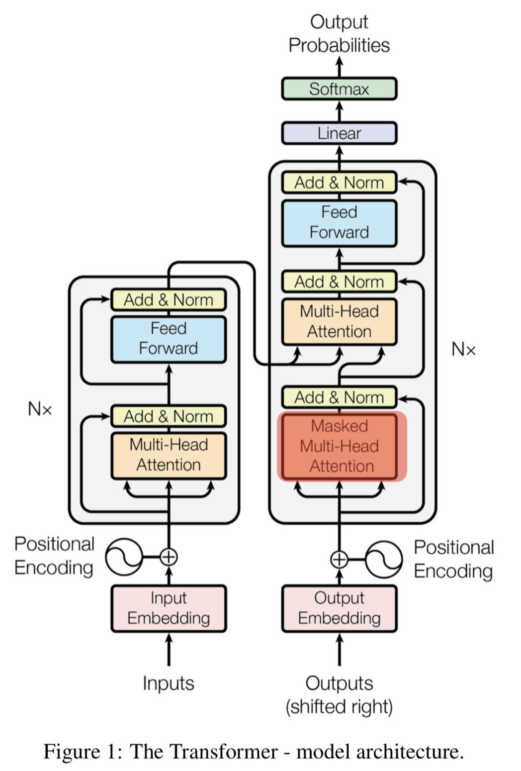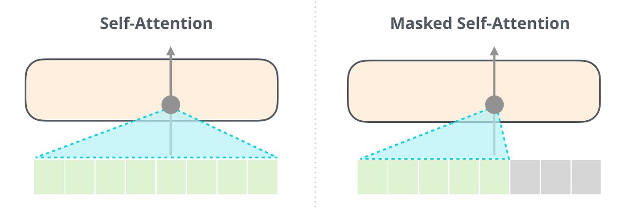 타깃 단어 뒤에 위치한 단어는 Self-Attention에 영향을 주지 않도록 마스킹(masking)해야 한다.