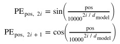 pos는 입력 문장에서의 임베딩 벡터의 위치를 나타내며, i는 임베딩 벡터 내의 차원의 인덱스를 의미