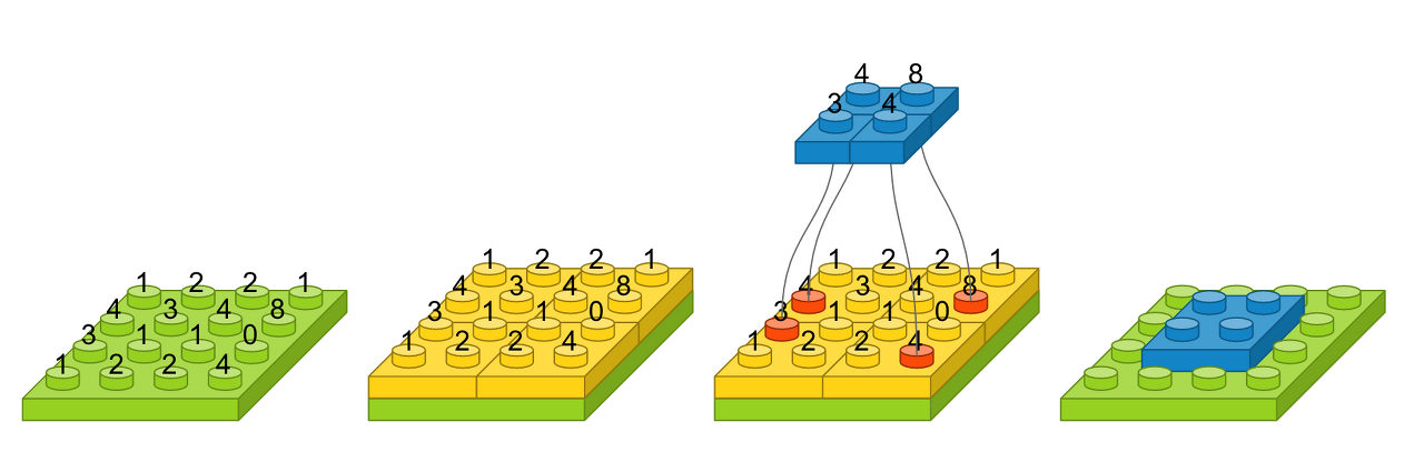 크기가 2 x 2인 필터가 하나인 경우를 레이어로 표시