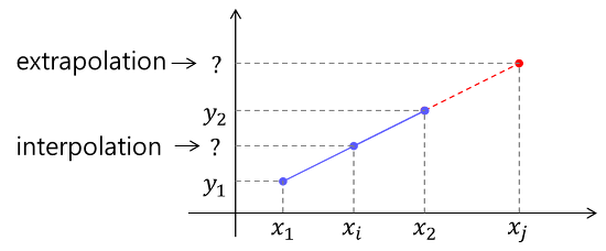 추정하는 것을 말한다. Interpolation과 대비되는 용어로 extrapolation이 있는데,