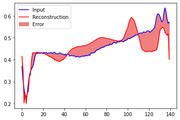 plt.fill_between(np.arange(140), decoded_imgs[0], normal_test_data[0], color='lightcoral' )