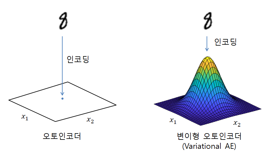 데이터를 잠재적 표현으로 변경하는 차원축소과정(encoding)과 잠재적 표현에서 다시 데이터로