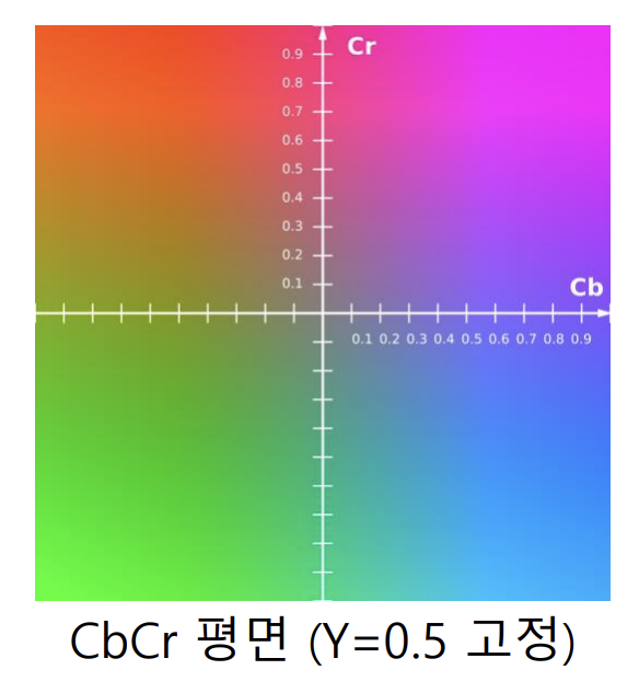 - Green이 없는데 이는 Cr + Cb를 섞으면 Green 된다.