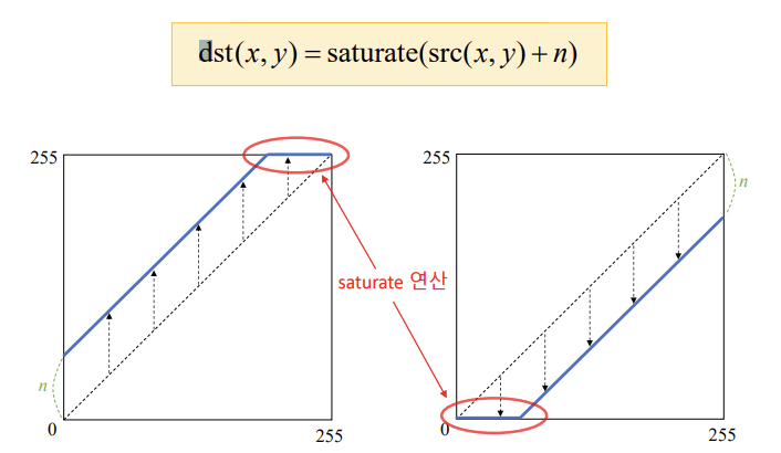 * - : 영상의 이미지가 음수가 될 수 없으니 0 (포화, Saturate 연산)