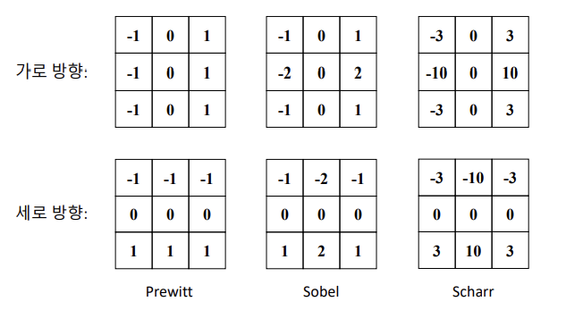 • 영상에서 픽셀의 밝기 값이 급격하게 변하는 부분