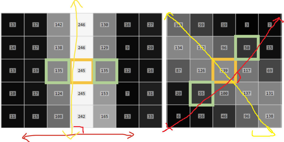 ex) 그림1 = 135미분값과 245 미분값과 비교 135가 작으니 버린다는 것이다.