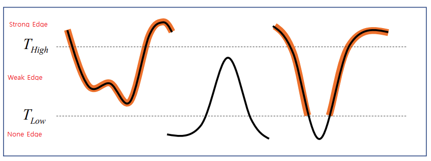 4. 히스테리시스 에지 트래킹 (Hysteresis edge tracking)