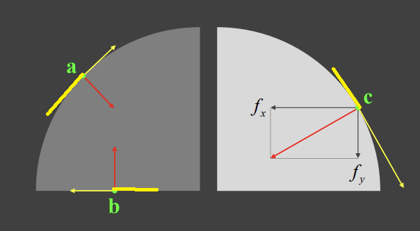 방향은 바뀌는 부분에서의 수직인 방향으로 가는것(밝은 쪽으로)