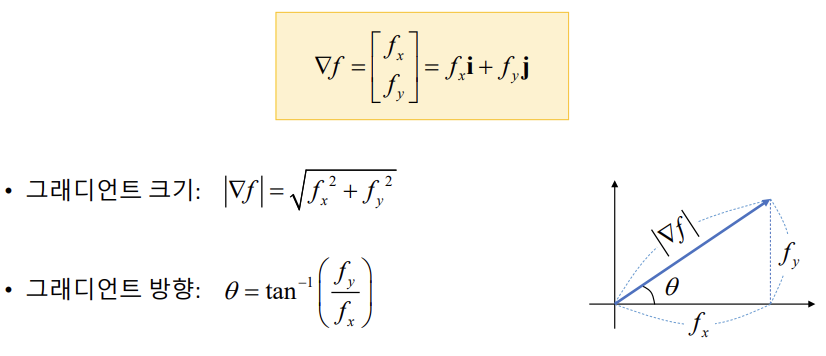 • Gradient 방향: 픽셀 값이 가장 급격하게 증가하는 방향(밝아지는 방향)