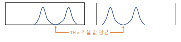 • 입력 영상이 배경(background)과 객체(object) 두 개로 구성되어 있다고 가정 → Bimodal histogram