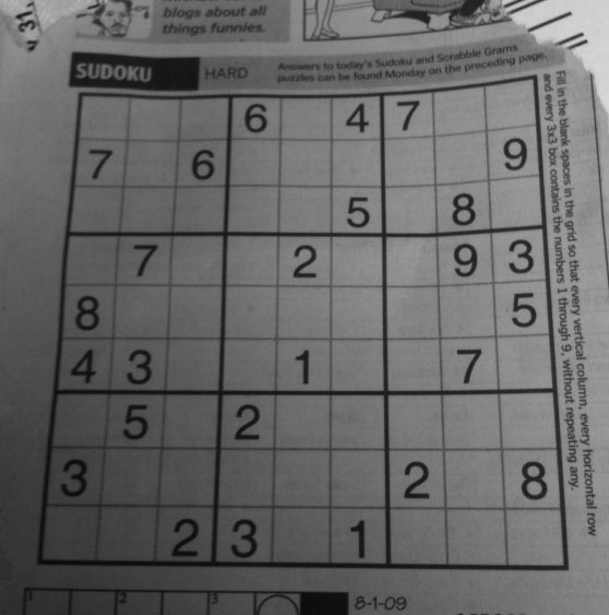 src = cv2.imread('ch07\\images\\sudoku.jpg', cv2.IMREAD_GRAYSCALE)