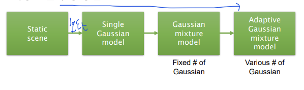 - 각 픽셀에 대해 MOG 확률 모델을 설정하여 배경과 전경을 구분