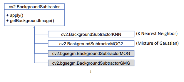# 배경 차분 알고리즘 객체 생성(MOG class 객체화)