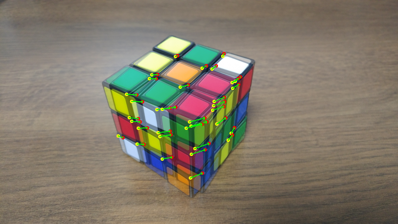 cv2.arrowedLine(dst, (pt1[i,0]).astype(int), (pt2[i,0]).astype(int), (0,255,0), 2)