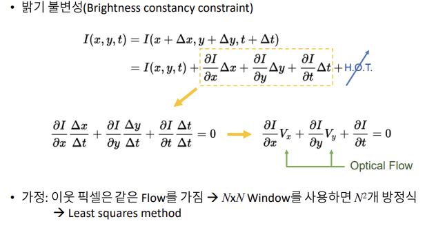 - 연속하는 두 프레임(영상)에서 카메라 or 객체의 움직임에 의해 나타나는
